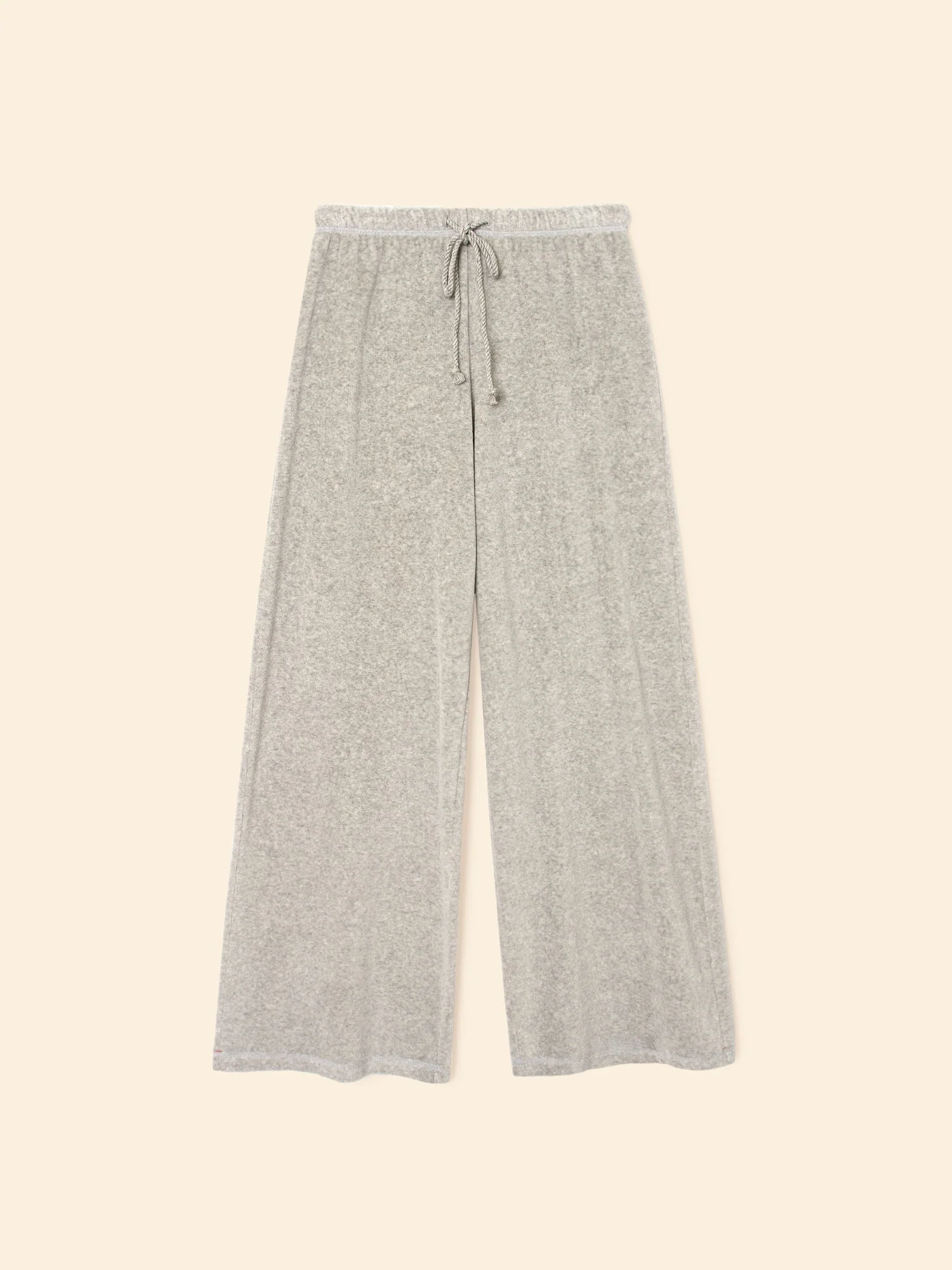 French allure meets California ease. Manon is new this season in our plush melange heather velour. This relaxed pull on pant features a wide leg and an elasticized drawstring waist. Pair back with the Pierre Sweatshirt for elevated comfort.